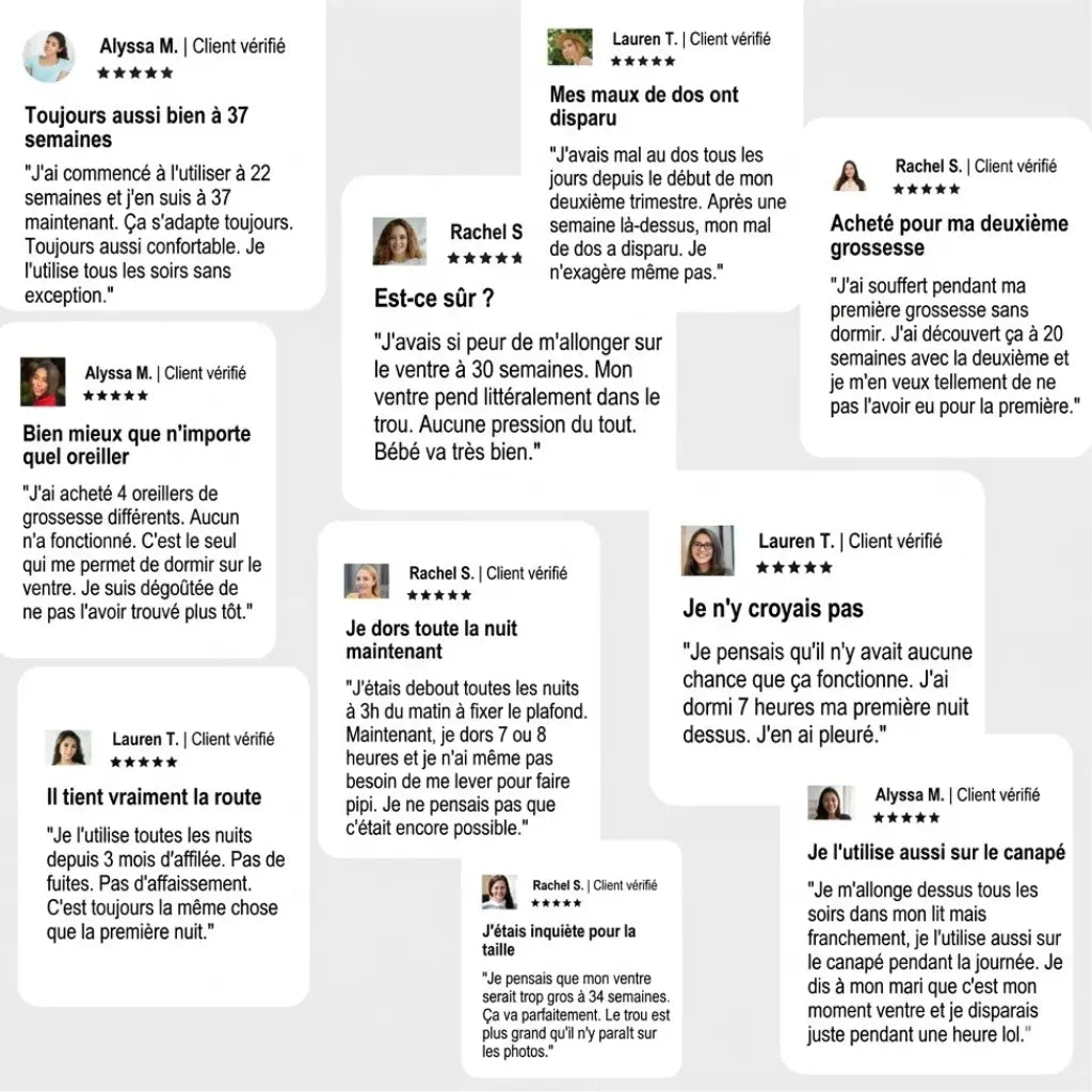 « Je l'ai acheté pour ma femme qui est enceinte de 7 mois et elle ne peut plus s'en passer. Il soulage ses maux de dos et elle dit qu'elle se sent “flotter” lorsqu'elle est allongée dessus. Excellent achat. Femme heureuse, vie heureuse 👍 »